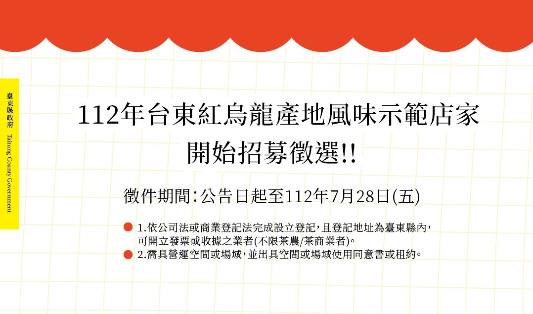1.依公司法或商業登記法完成設立登記,且登記地址為臺東縣內,可開立發票或收據之業者(不限茶農/茶商業者)。