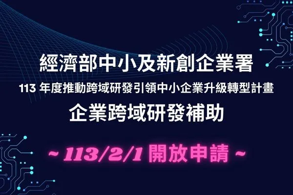 【#政府資源分享】113年度「推動跨域研發引領中小企業升級轉型計畫」企業跨域研發補助