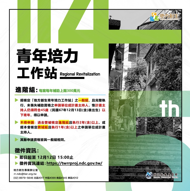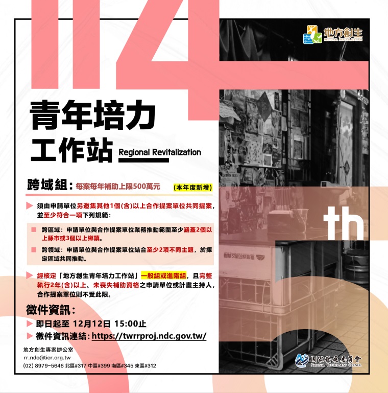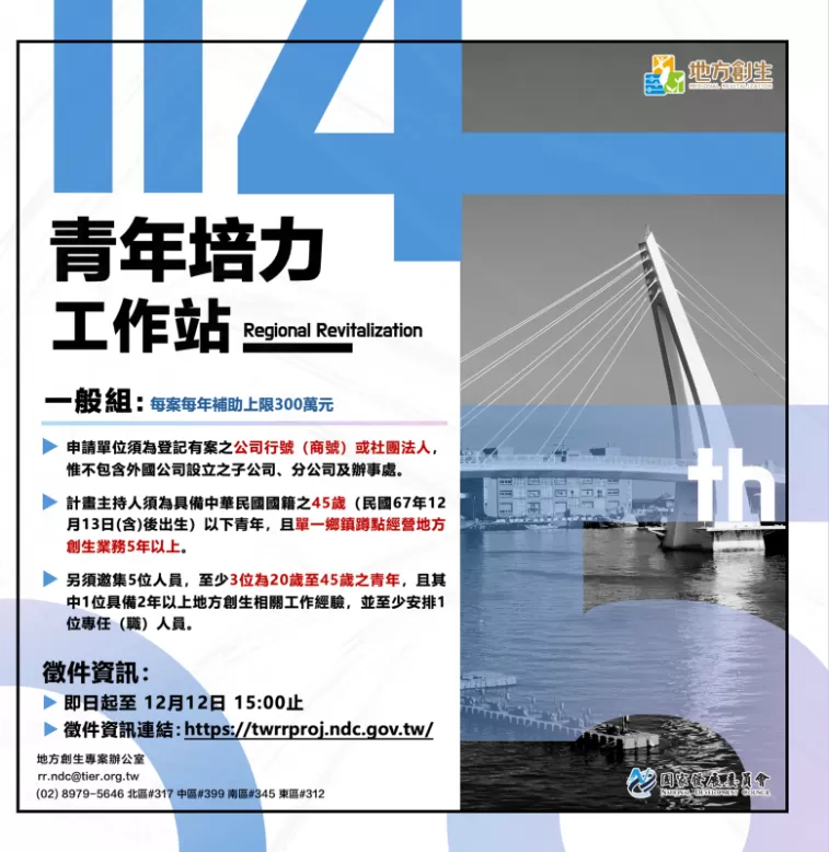 「114年度地方創生青年培力工作站」徵件開跑囉!