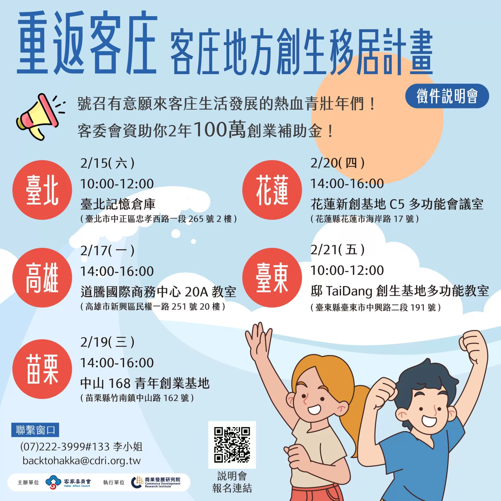 聯繫窗口 backtohakka@cdri.org.tw (07)222-3999#133 李小姐