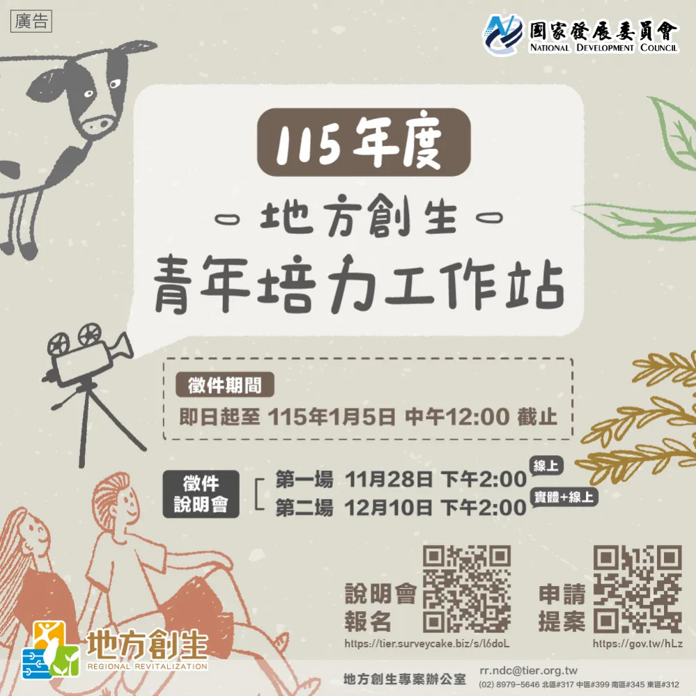 徵件時間:即日起 至 115年1月5日(一)中午12時截止。