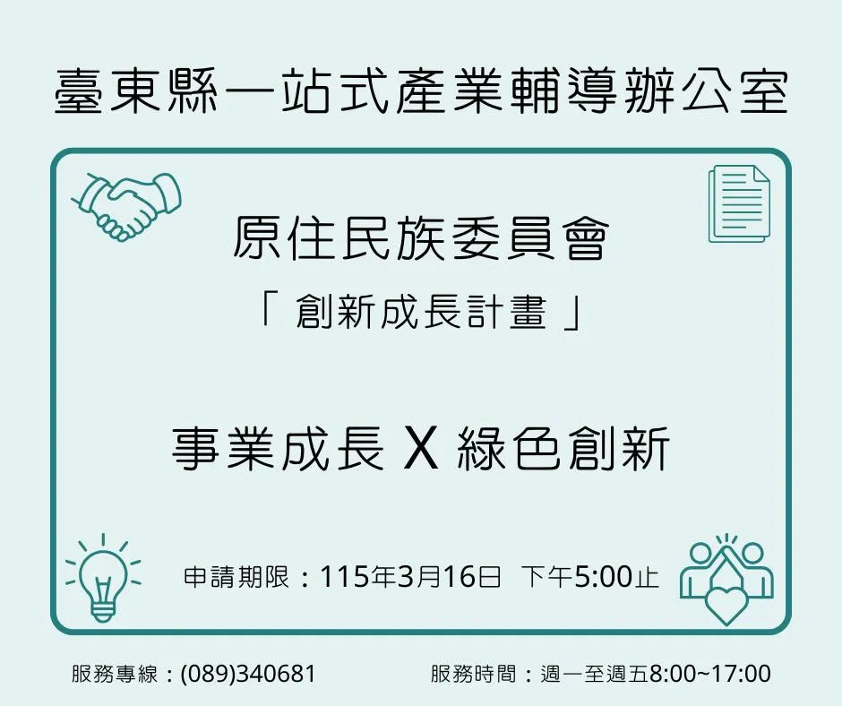 原住民族委員會 「115 年度創新成長計畫」 專門支持 「營業中」 且 「體質健康」 的原住民族企業。不論您是要衝營收,還是要拚減碳,這裡都有對應的資源!